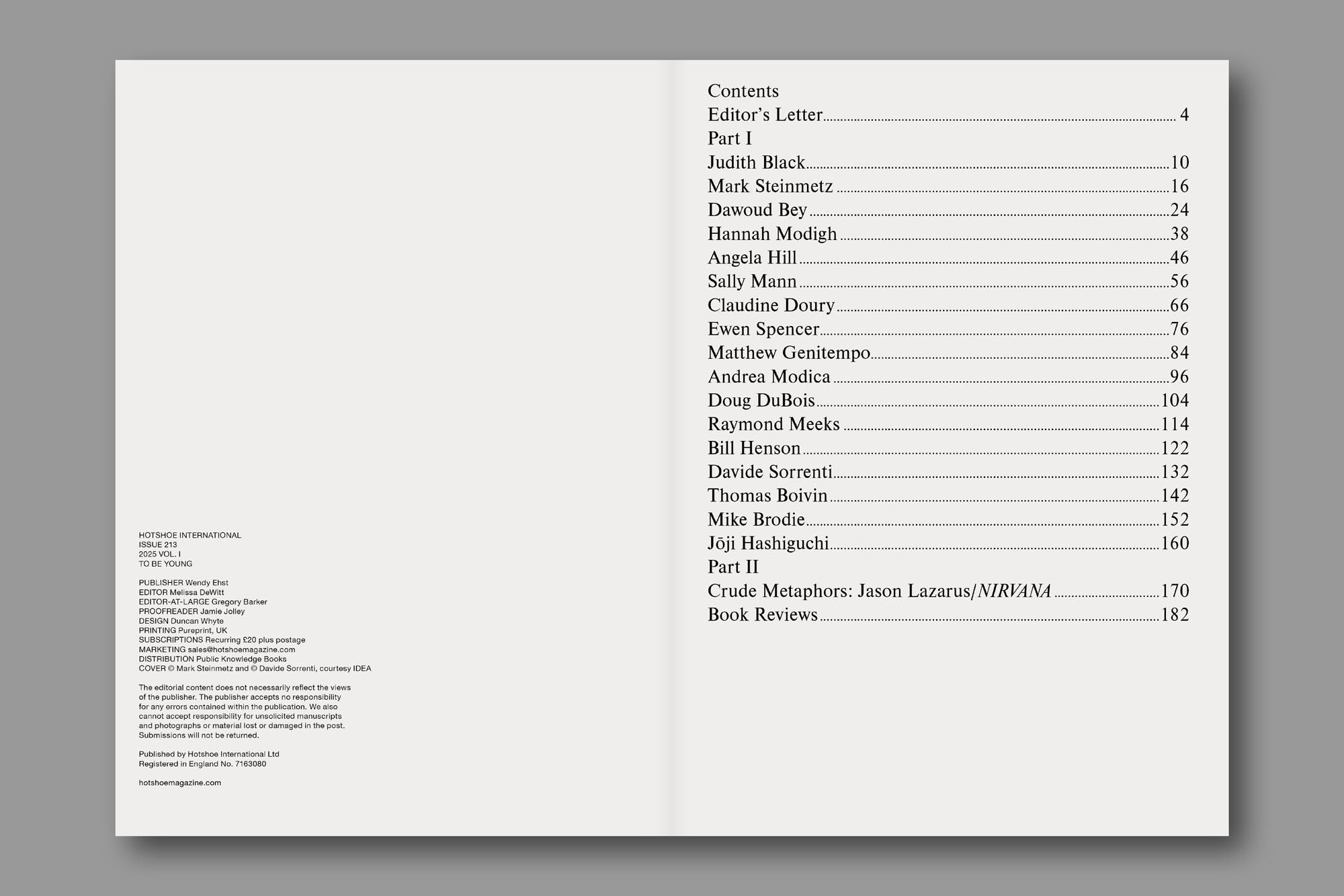 With contributions from eighteen different photographers, including Sally Mann, Dawoud Bey, Mark Steinmetz, and Mike Brodie; an extended Q&A that asks questions about the artists' own memories of being young whilst considering what it takes to capture the feeling of youth through photography; a special Crude Metaphors featuring Jason Lazarus's project NIRVANA which juxtaposes images with answers to the question, ‘Who introduced you to the band NIRVANA?’; plus reviews of four newly release photobooks, this is an issue not to be missed.